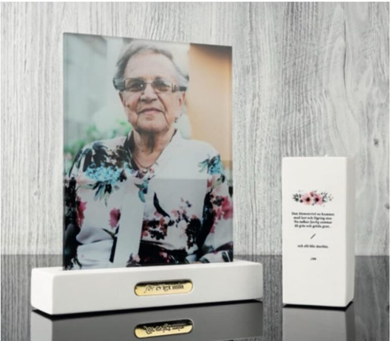 Omsorgsfullt utformade ljuslyktor med personliga inslag, som namn, datum och minnesvärda ord. En fysisk manifestation av en älskads närvaro, som ger tröst och stöd. Minnestavlorna är konstnärligt skapade unika verk som kombinerar bild och ord för att återspegla den avlidnes personlighet.
