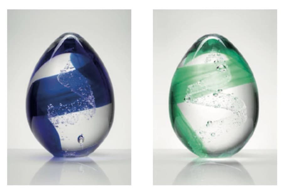 Minneskristallen är en strålande symbol för det förflutna och en hyllning till en avliden familjemedlem. Den är formad i glas och bär inom sig en unik spiral av DNA, som representerar det individuella arvet hos den älskade personen. När den fångar ljuset, sprider den regnbågens färger omkring sig och påminner oss om den kärlek och värme som personen gav oss.