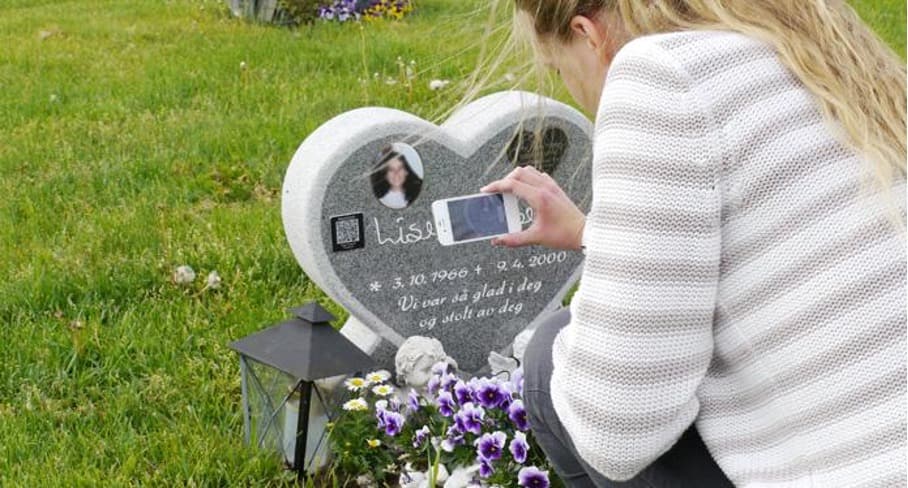 QR-bricka på gravstenen